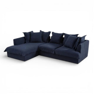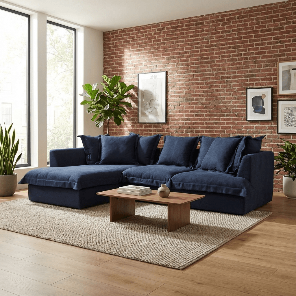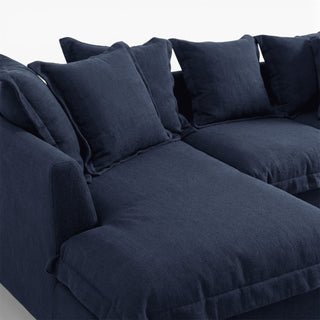 Elevate your space with the rich, timeless look of deep navy linen. Crafted from 100% natural fibers, this upholstery offers breathable comfort, durability, and effortless style.