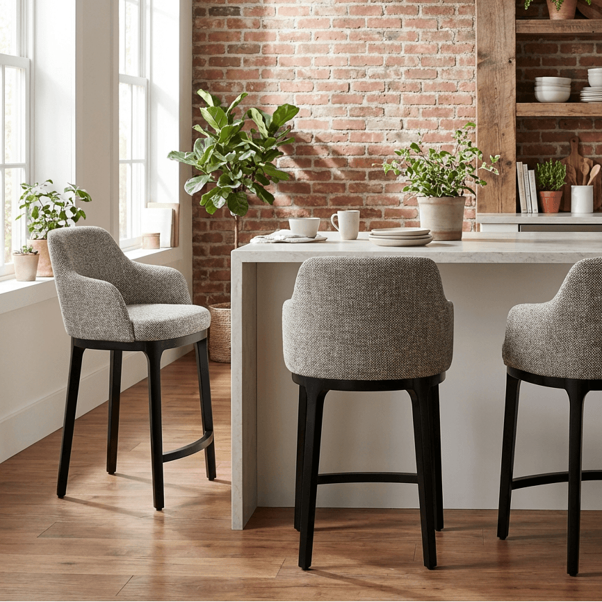 The Natalia counter-stool features a sleek silhouette and elegant proportions, blending contemporary flair with classic charm for a sophisticated and inviting design.