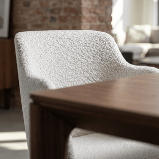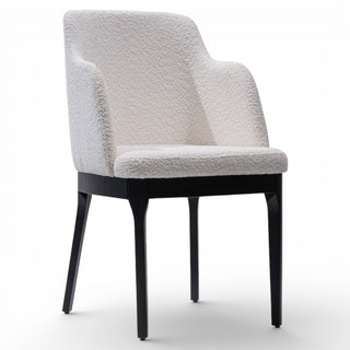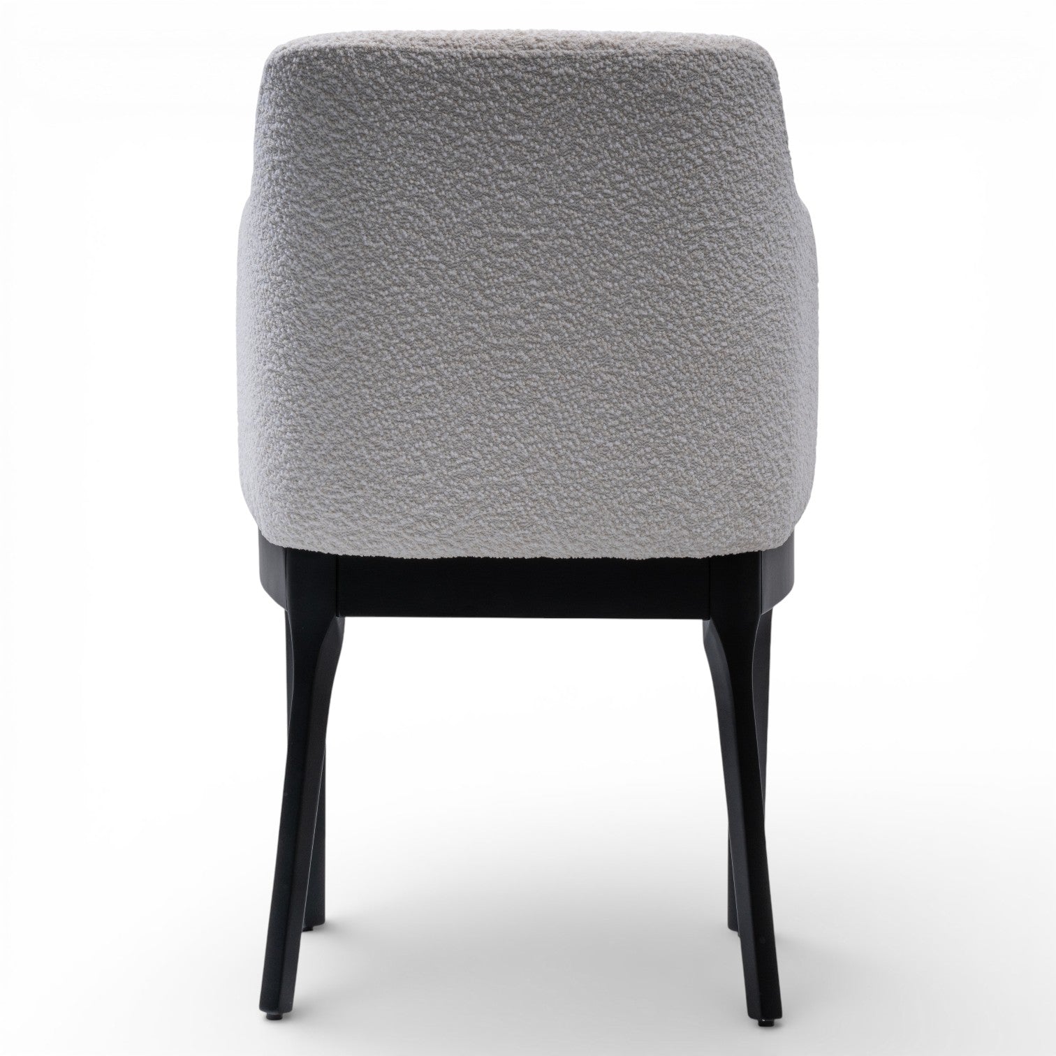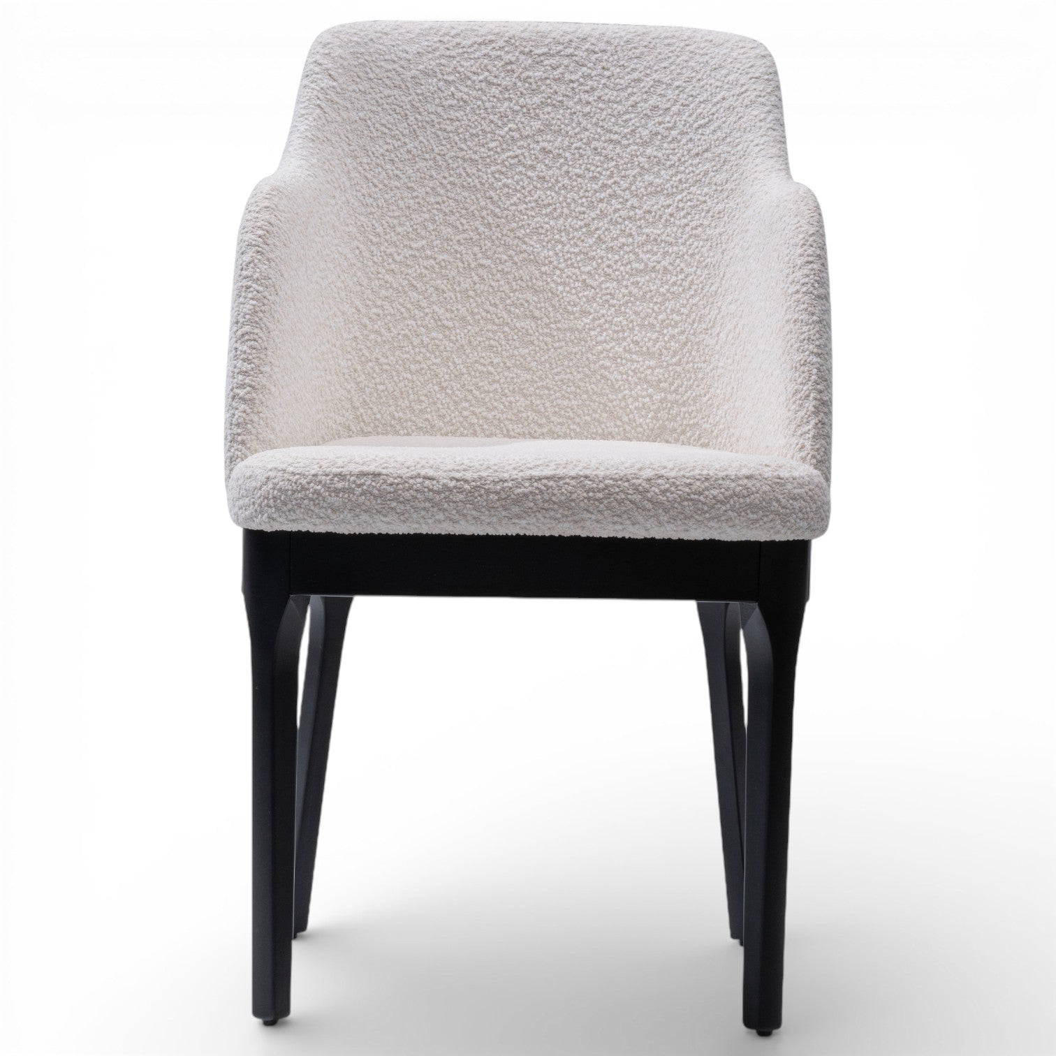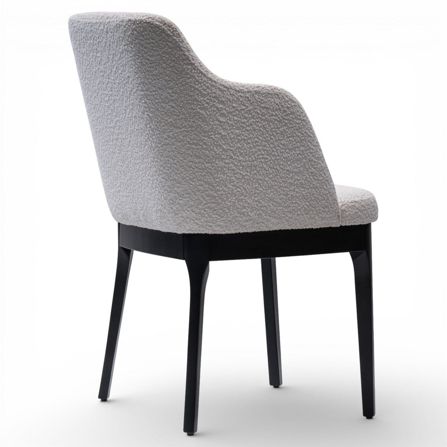 With its sleek black hardwood base and refined soft bouclé upholstery, the Natalia chair blends contemporary sophistication with enduring style.