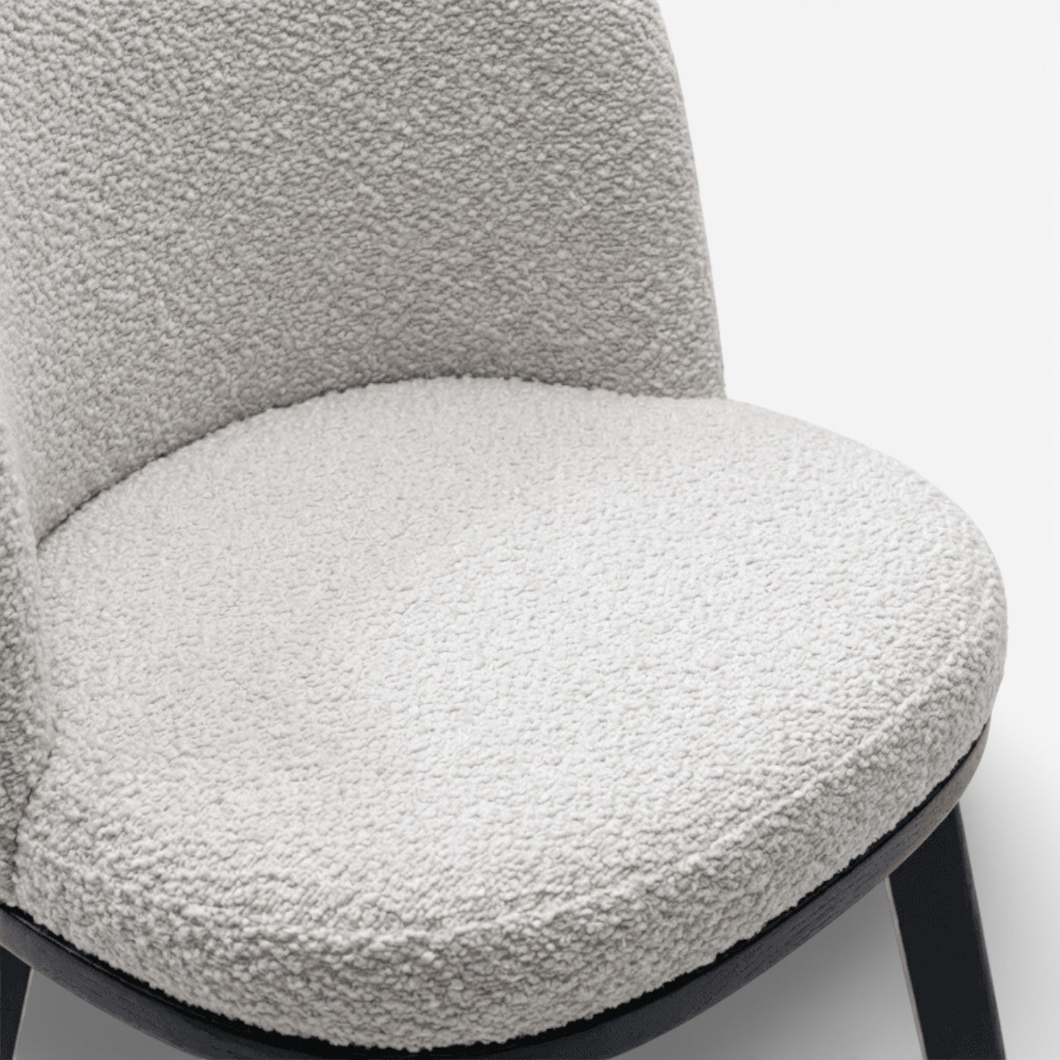 With its sleek black hardwood base and refined soft bouclé upholstery, the Orero chair blends contemporary sophistication with enduring style.