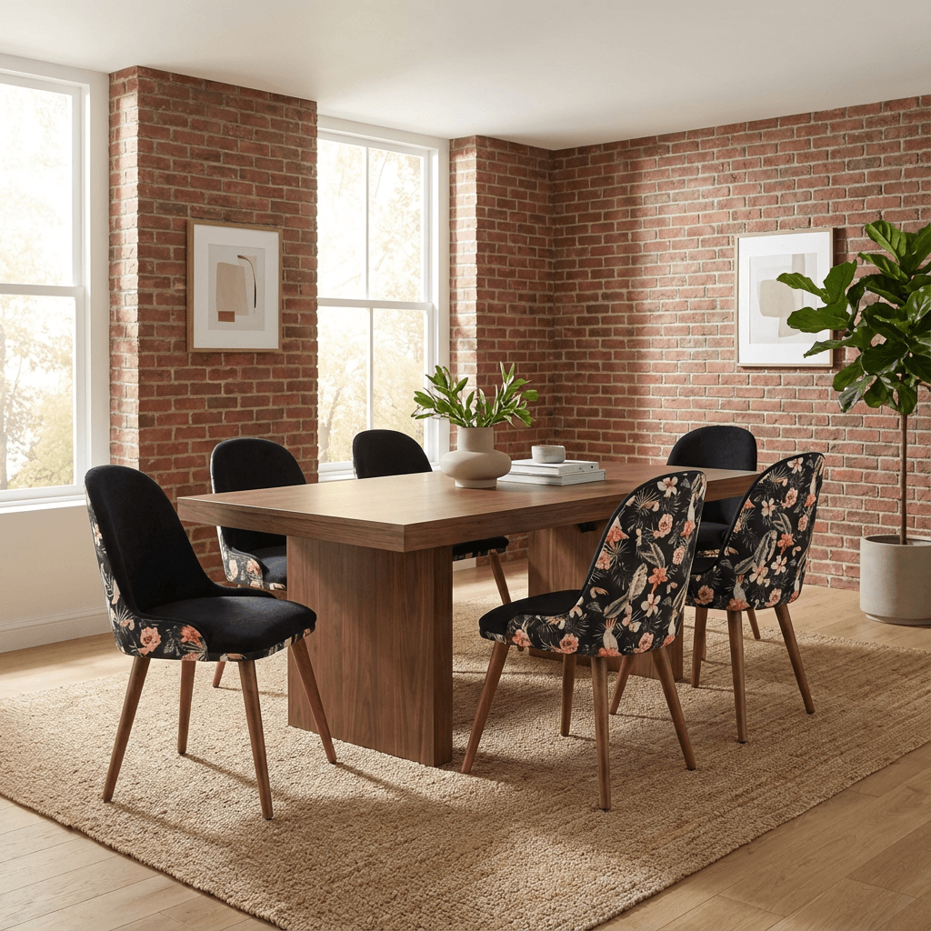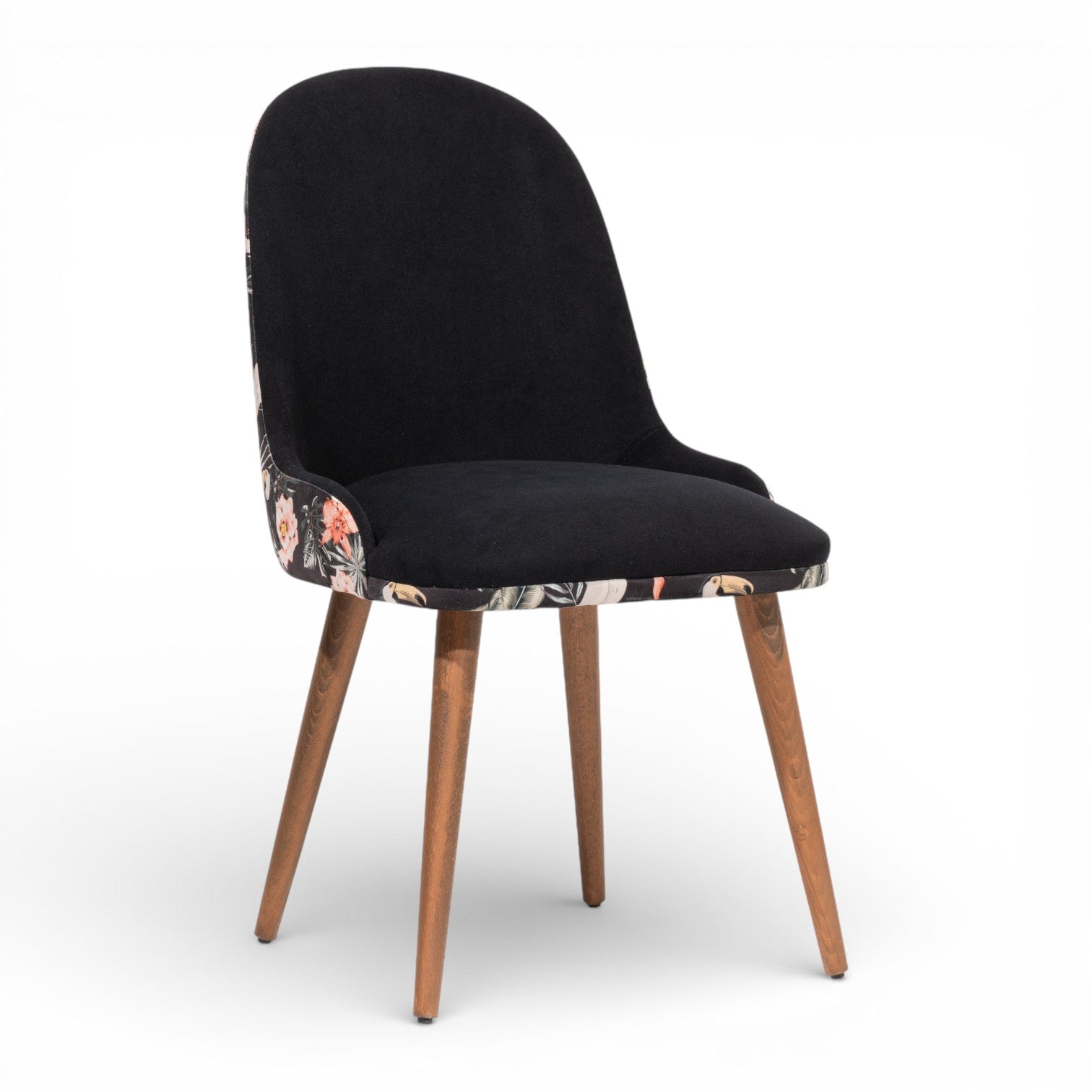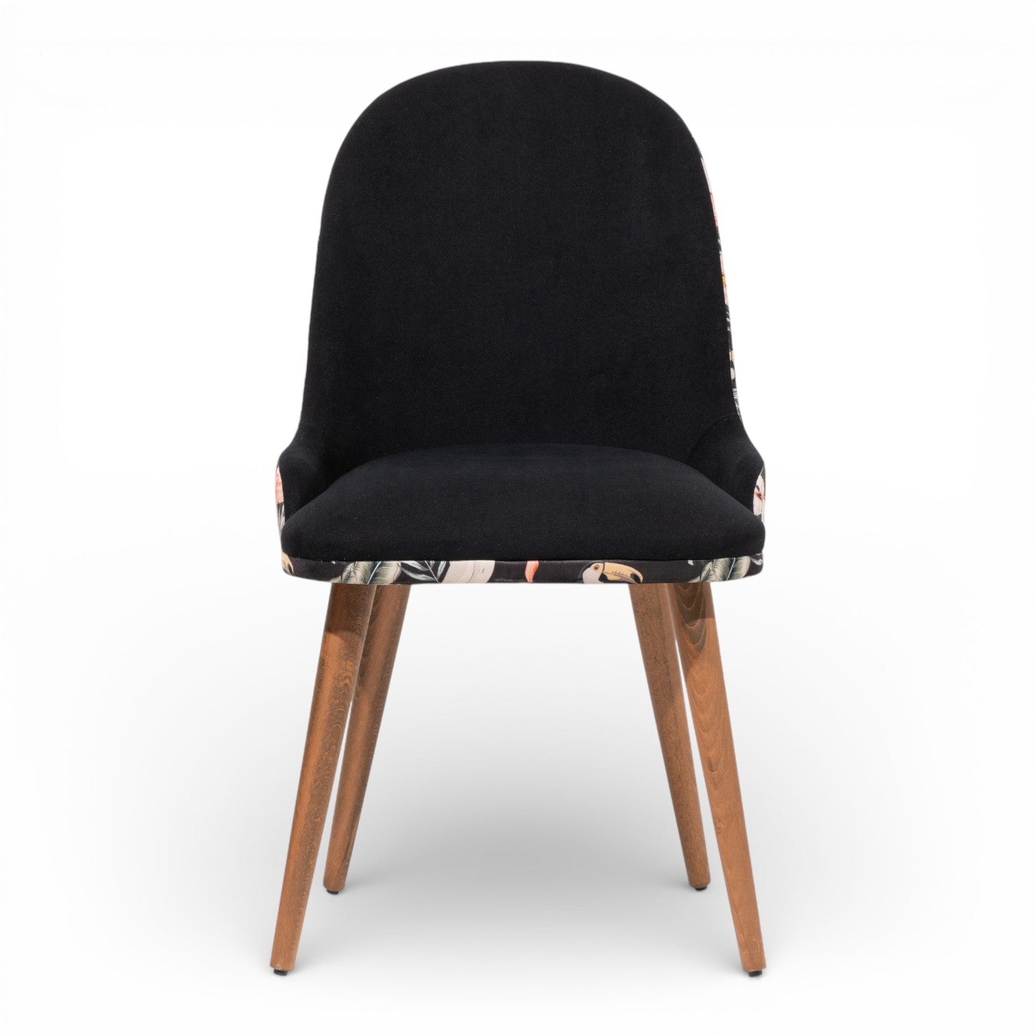 Eye-catching tropical fabric wraps the back and sides, paired with a sleek black seat for striking contrast.
