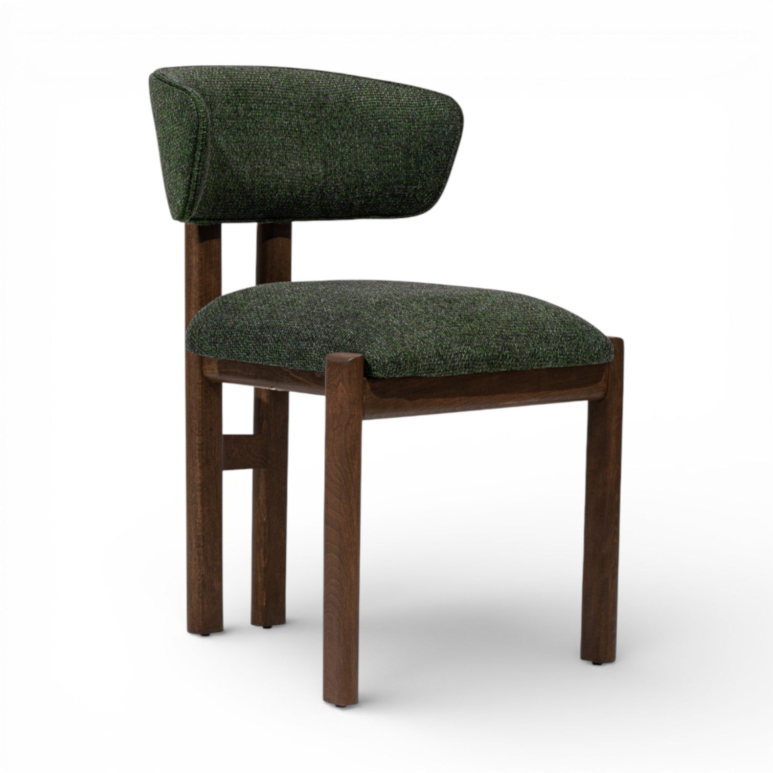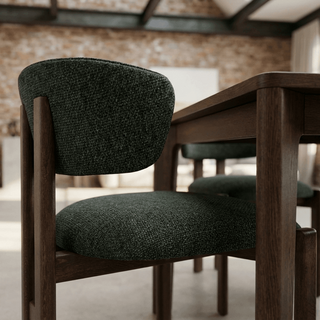 The Segura Dining Chair features a stylish round backrest, combining soft curves and exposed wood for a refined, timeless look that elevates any dining space